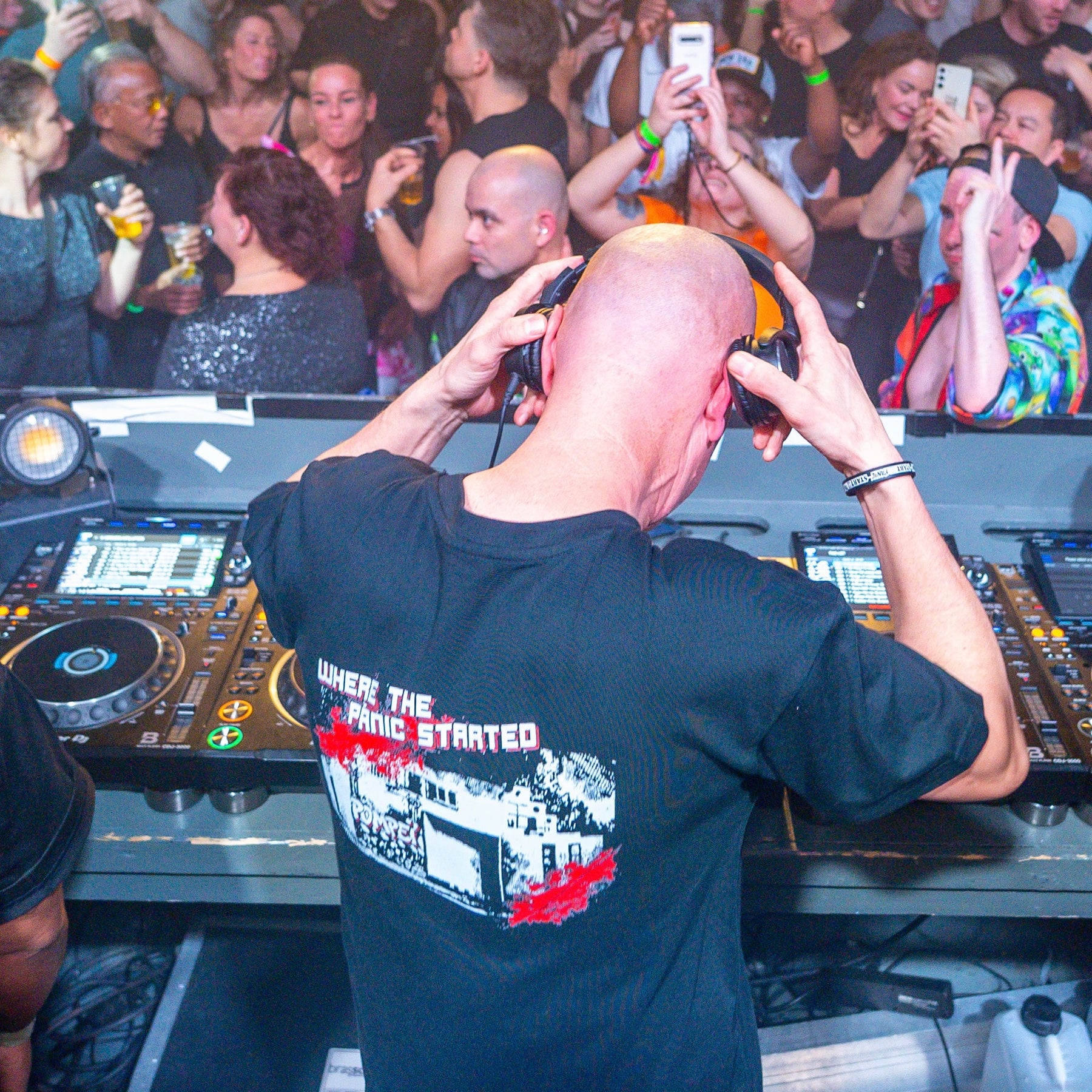 Op de achterkant staat het iconische Pompei-gebouw, de club waar Panic begon met draaien.